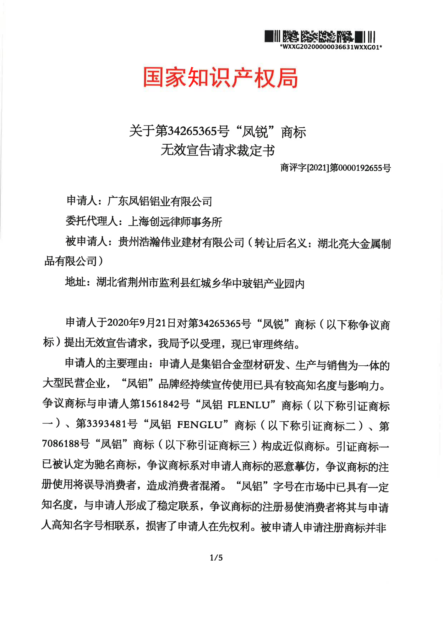 唐山辉知队 | 国家知识产权局:“凤锐”商标无效